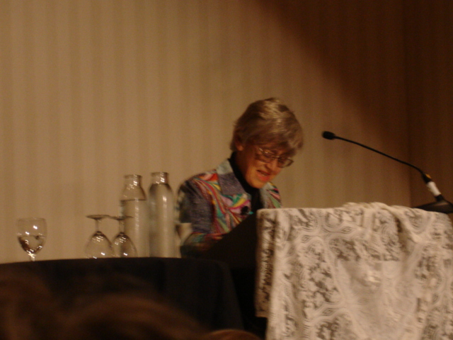 Day Three at the JASNA AGM in Portland: A quick continental breakfast with Laurel Ann and a few friends at the table – discovered that Elaine Bander is quite a scholar of Dorothy L. Sayers –more on this in another post – and then off to the Plenary with JASNA North American Scholar Juliet McMaster on – “‘A Surmise of such Horror’: Catherine Morland’s Imagination.” I have heard Prof. McMaster speak on several occasions and she never fails to express “in the best chosen language” all there is to love about Jane Austen. Today she begins with showing us a “cheap” 1965 paperback edition of Northanger Abbey, where “gothic’ is everything, cover and blurbs teasing us with the horrors that await us in these pages – she ends her talk with surmising that perhaps they didn’t get it so wrong! She presents this by examining the quality of Catherine’s mind – a combination of innocence and wisdom, likening her to the “holy fool” of Shakespeare or Dickens, a “good fool”. Where Henry Tilney is so often the focus of Northanger Abbey criticism, Catherine relegated to the “heroine” that Austen herself seems to denigrate, McMaster gives us a gift: Catherine redeemed and placed in her rightful home next to Austen’s other great heroines.