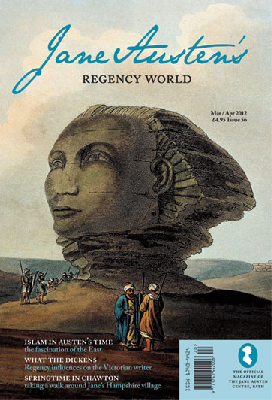 Jane Austen’s Regency World magazine is the only full-colour glossy magazine dedicated to Jane Austen and the Georgian and Regency times. It is published six times a year in Bath, England, and mailed worldwide by subscription. Copies are also sold via Jane Austen’s House Museum, Chawton; the Jane Austen Centre, Bath; and Jane Austen Books in the US.