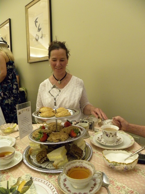 What a lovely tea it was! And how impressed was I to discover that all the china being put into service was the collection of one lady!—Bonnie Wise, the Regional Coordinator for Louisville and spearhead of this event. Truly amazing, and very gracious of her to trust us with her precious china. Our table tried several tea blends (all from the Bingley Tea line) but I must confess my favorite was “Marianne’s Passion” – it was delicious served hot, with a fruity under-taste; and even better when I later sampled it in iced tea form.