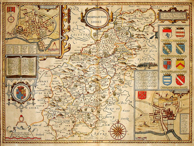 Image: 17th century map of Northamptonshire, by John Speed (wikipedia)