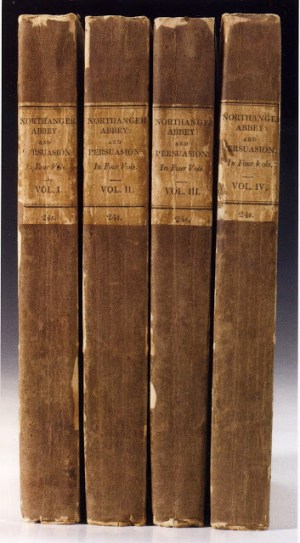 – Published by John Murray, London; 1818; in four volumes: the two Northanger Abbey volumes printed by C. Roworth; the two Persuasion volumes by T. Davison of Lombard St.