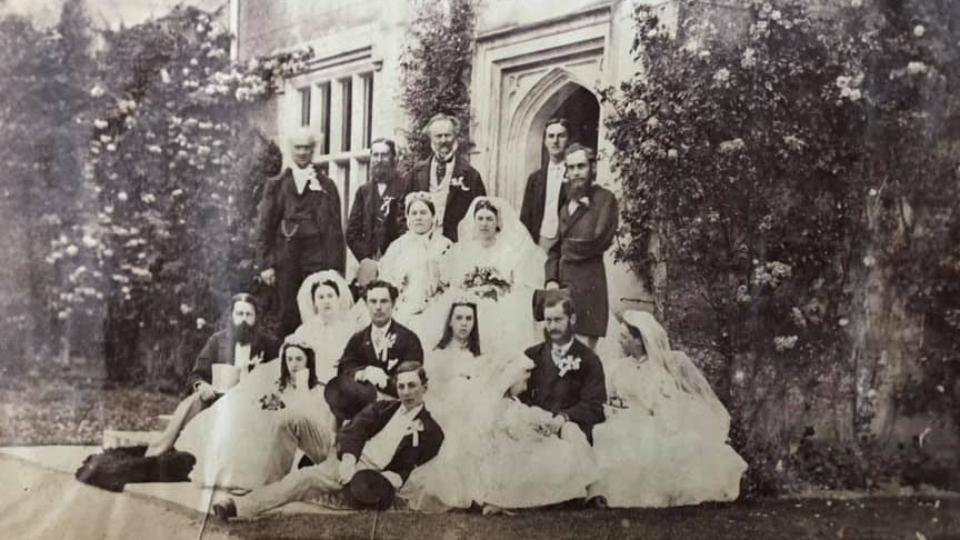 Image: Wedding at Chawton House, England in 1865 of Elizabeth Knight (great-niece of Jane Austen to Capt. Edward Bradford, who lost his arm in a tiger attack and later became the head of the Metropolitan police. (Renee Ghert-Zand/TOI, © Karen Ievers)