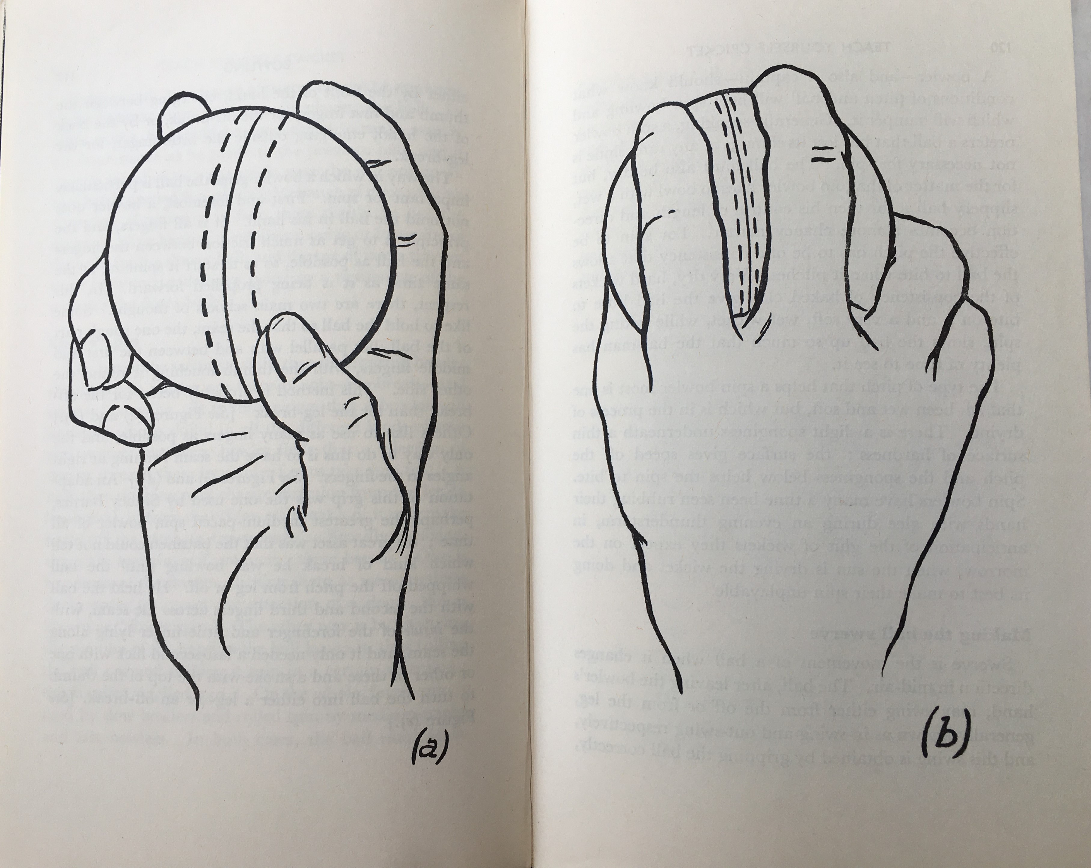 When I was seven years old my father bought me a cricket bat. He also bought this book for me, Approach to the Game: CRICKET_HOW TO PLAY, published for the M.C.C [Marylebone Cricket Club] 1955. It had some clear illustrations in it so I could analyse how to play certain skills.