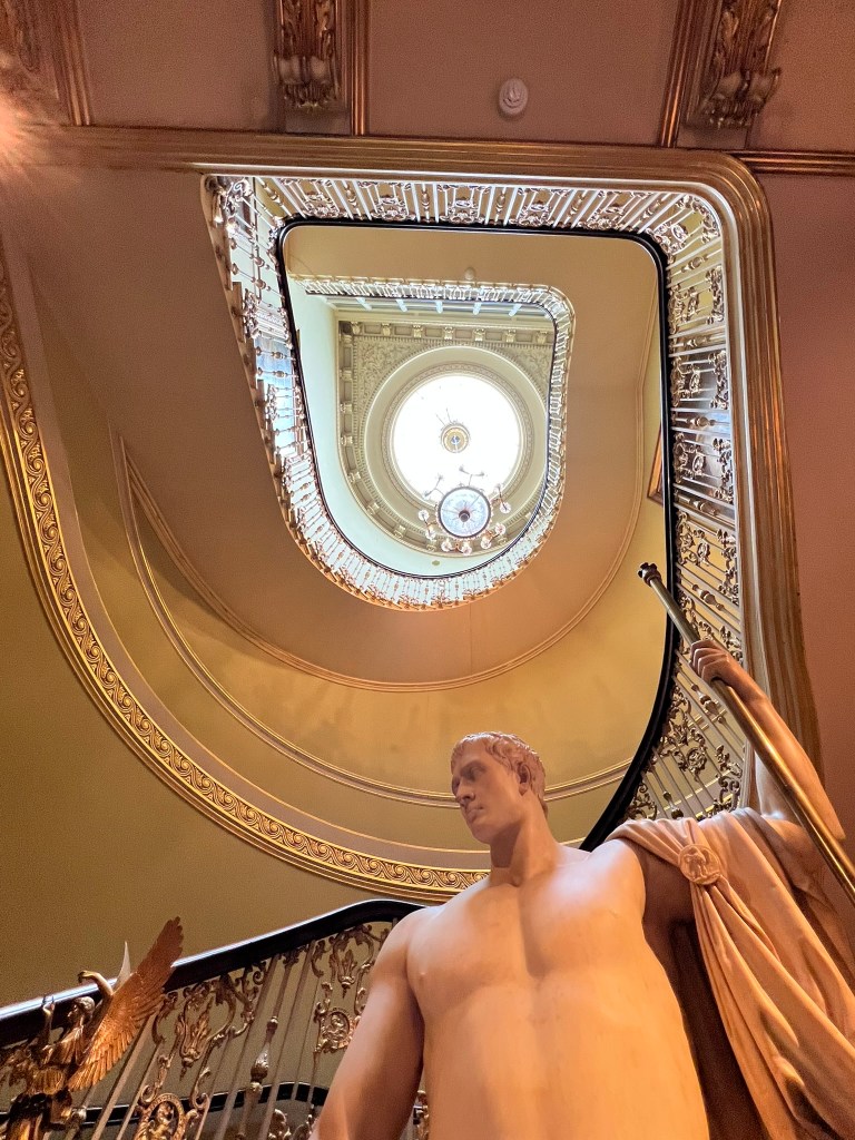 We hit Hatchard’s on Piccadilly first thing – one of those must-see places whenever in London [I go again when I came back in July] – founded in 1797, claims to be the oldest in the UK, it offers five floors of books, mostly new but also a brilliant collection of used and rare…one could be here all day, or more – so we do a rather fast scurry to all the floors, find this book, newly out that we both have to have…