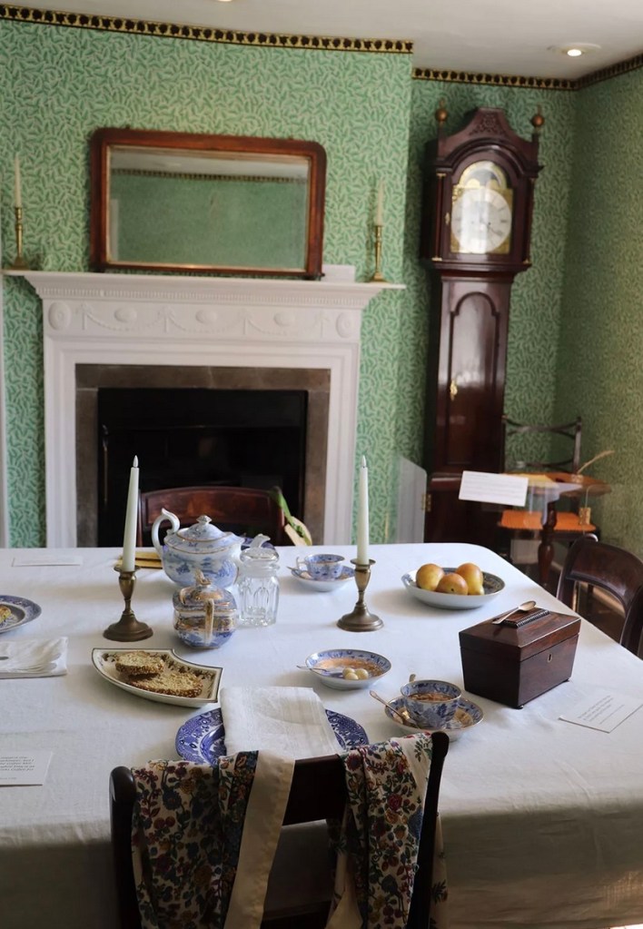 The rooms decorated with the newly minted wallpaper, recreated from the existing fragments, it all feels as though Jane herself is just around the corner…