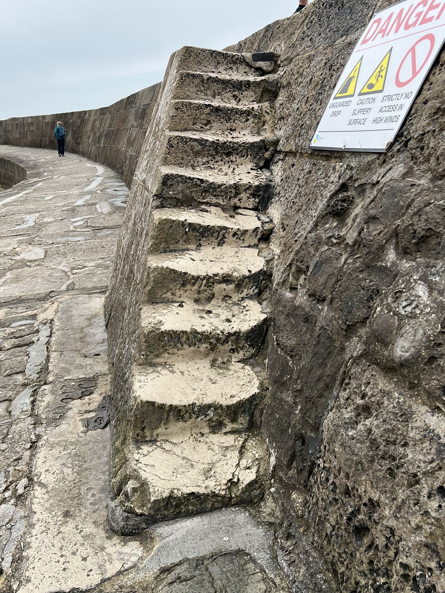 But, back to the steps – the confusion continues as to which steps Louisa actually jumped from – “granny’s teeth” on the left being the most decided upon: but another treacherous walking adventure on the Cobb… two of my photos: