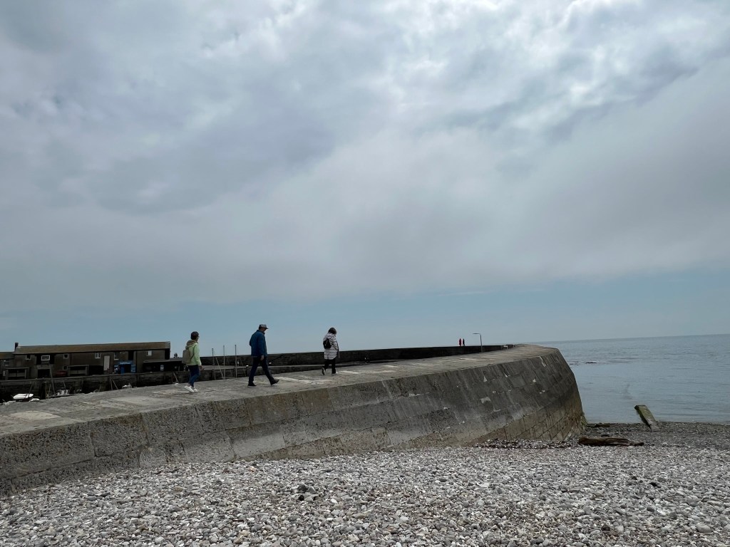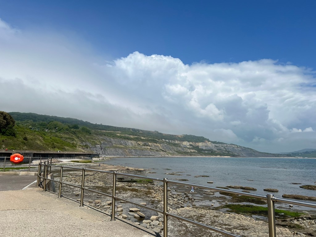 a farewell to Lyme Regis…the Cliffs just appearing…