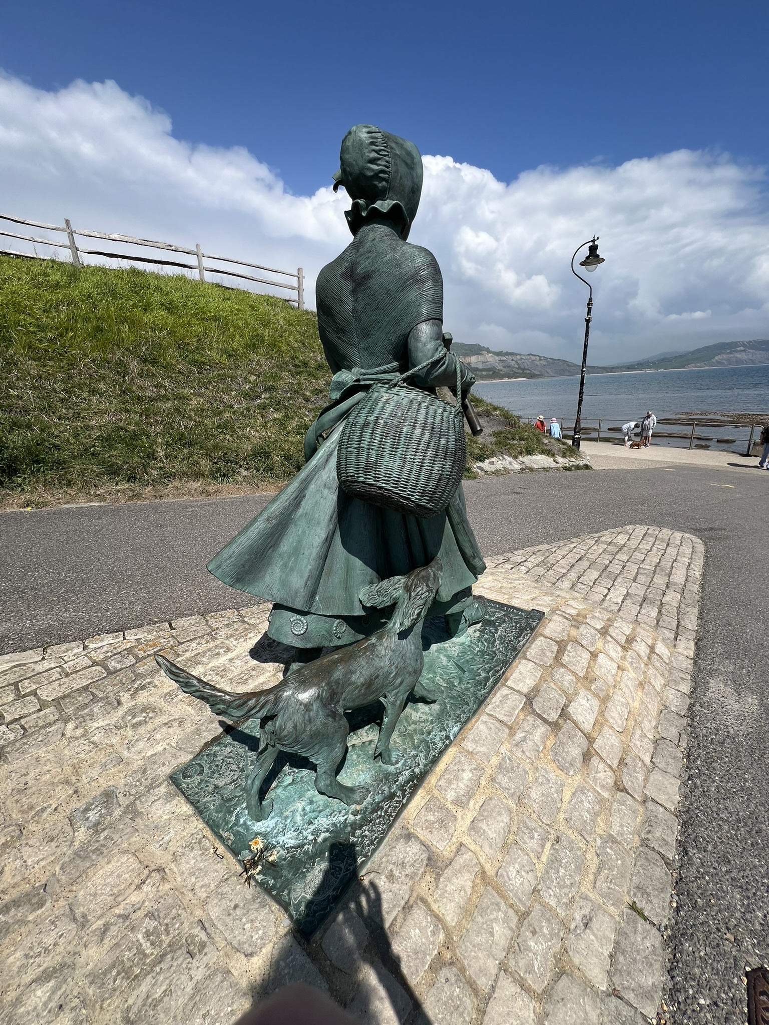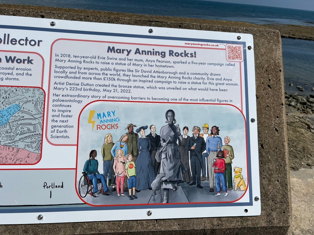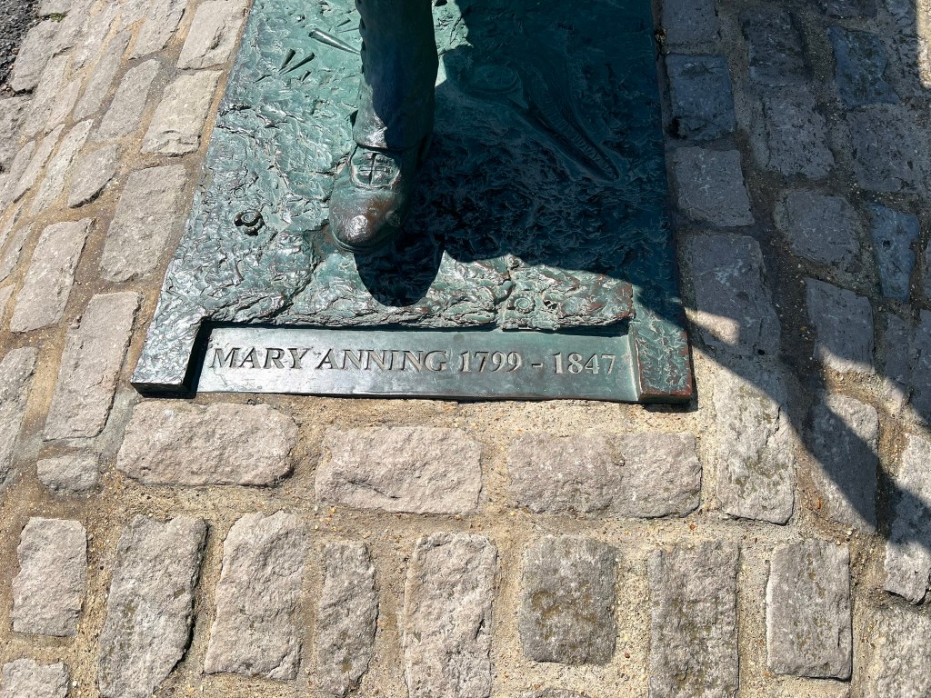 So, one of my main quests in our short visit to Lyme Regis was to see the Mary Anning statue, recently unveiled in 2022 – its creation a story in itself: a crowdfunding campaign called “Mary Anning Rocks” started by an 11-year old girl in Dorset – [did you know that 85% of the statues in the UK are of men??? Why am I not surprised…].