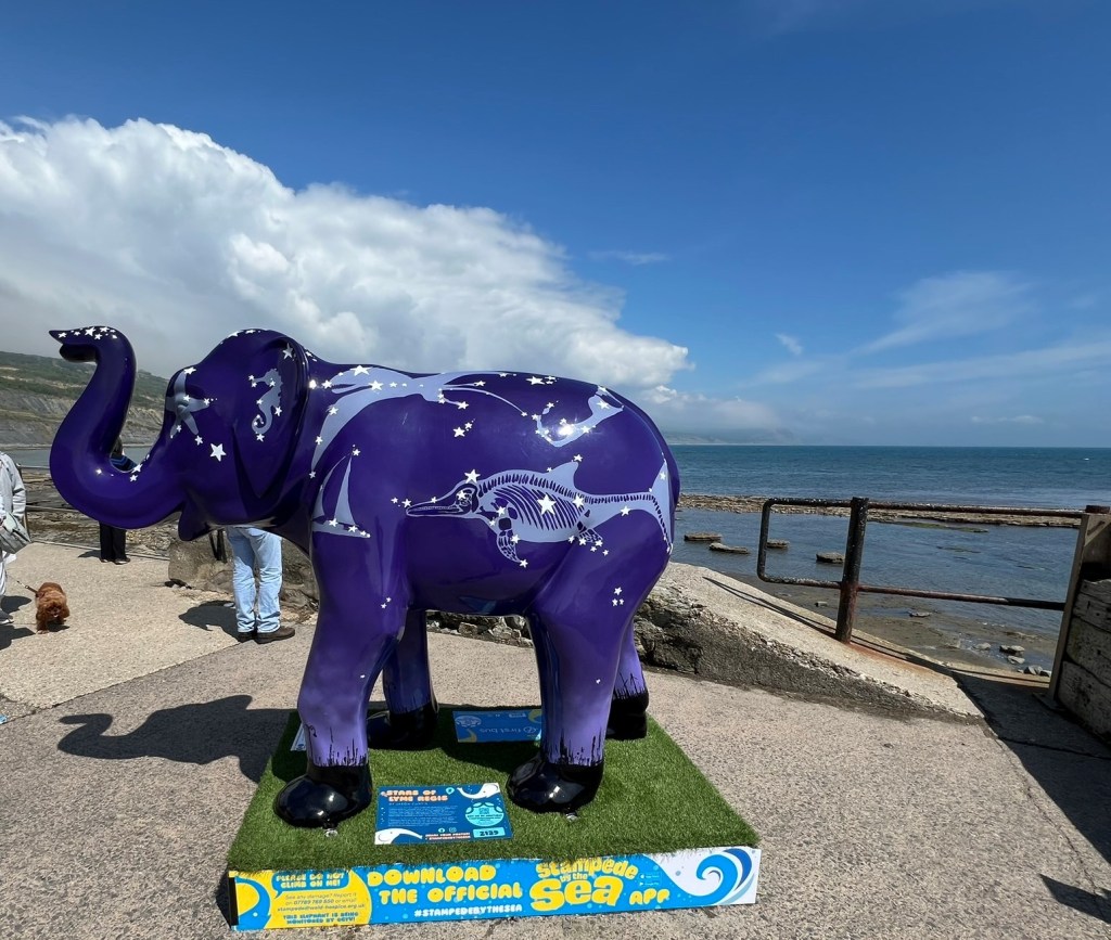 Also of interest walking around town is the current Stampede by the Sea – a collection of decorated painted elephants auctioned off for a charity event – you can find them all here on the map below, but here are two that captured my imagination: [look closely at this first one – what do you see??]