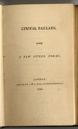 William Wordsworth. Lyrical Ballads. London, 1798. Full title: Lyrical Ballads, with a Few Other Poems is a collection of poems by William Wordsworth and Samuel Taylor Coleridge [Mr. Hayward does not mention Coleridge at all!], first published in 1798 and considered to have marked the beginning of the English Romantic movement in literature. Most of the poems in the 1798 edition were written by Wordsworth; Coleridge has only four poems included, one being his most famous work, The Rime of the Ancient Mariner.