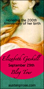 The Gaskell Blog Tour: Here is the complete tour through the 15 blog posts celebrating Gaskell’s Birthday today: and remember that one lucky commenter will win a copy of an unabridged edition of North and South by Naxos AudioBooks read by Clare Willie. That’s 18 hours of Margaret Hale and John Thornton sparring and sparking in Gaskell’s most acclaimed work. Here is a list of participants. You can visit them in any order and all comments during the contest will count toward your chance to win. Good luck and Happy Birthday Mrs. Gaskell!