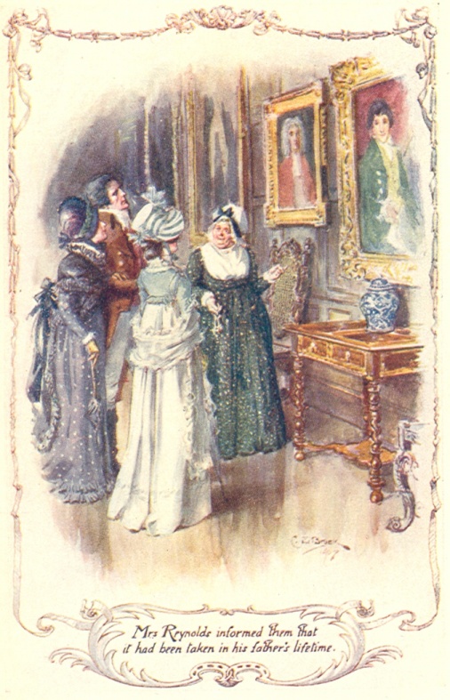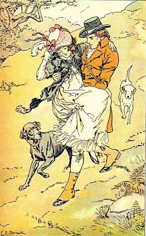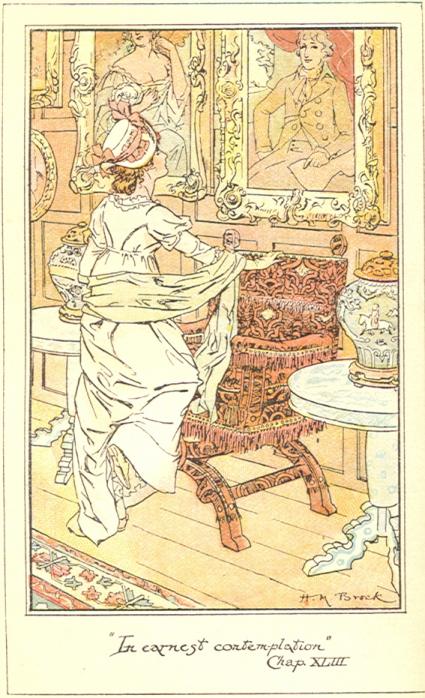 One of my favorite scenes in Pride & Prejudice is Elizabeth “in earnest contemplation” – here we can see CE Brock’s line drawing for Macmillan in 1895 and HM Brock’s in 1898, and CE Brock’s in 1907 [are you sufficiently confused yet??]