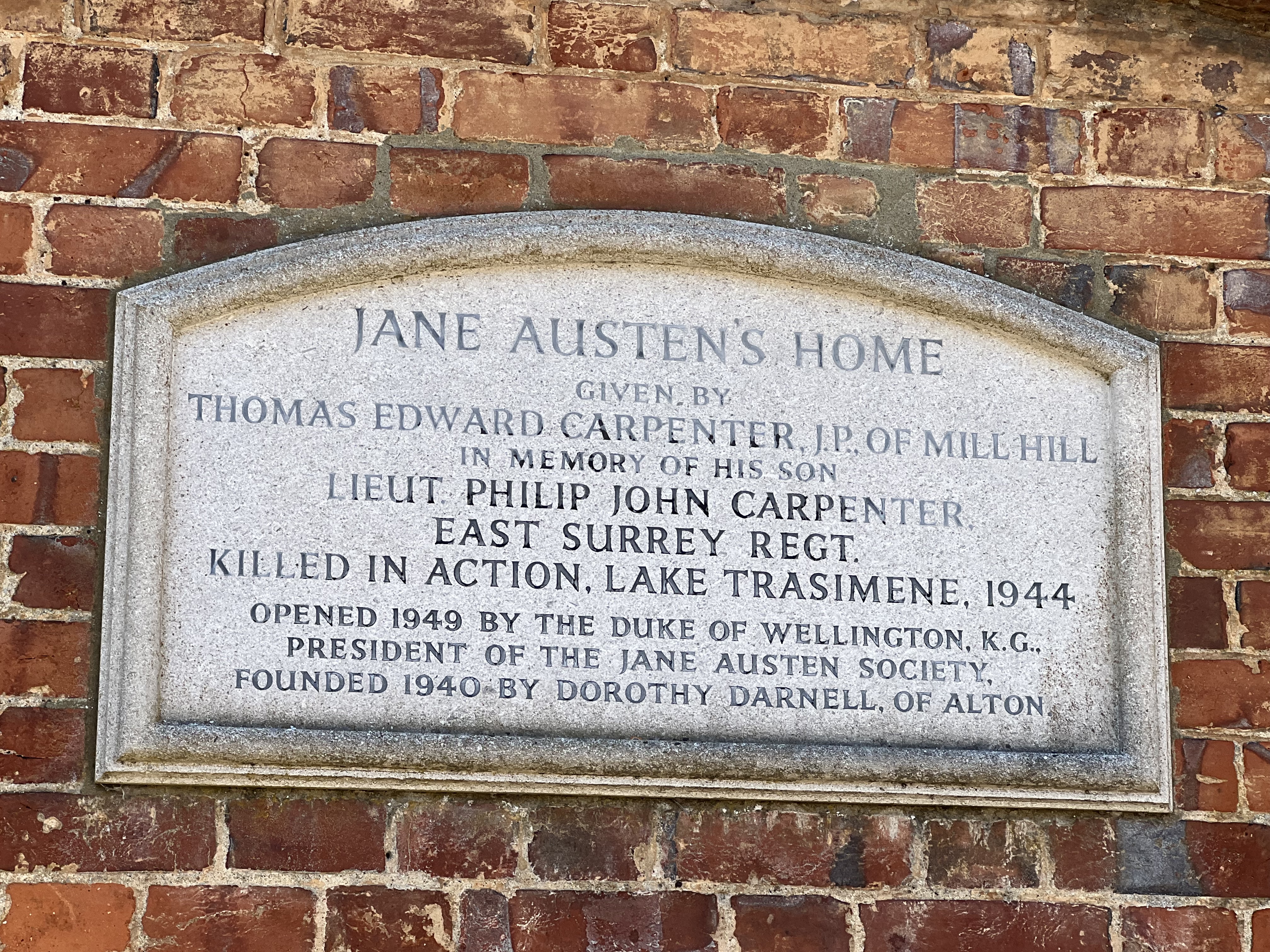 We were then off down the road to the “Chawton Cottage” – now called the JAHM: https://janeaustens.house/ – a short trek in Jane Austen’s footsteps, nothing much changed from her own time here, excepting macadam and sidewalks, and cars roaming about rather than horses and carriages and stagecoaches rumbling by their front window….