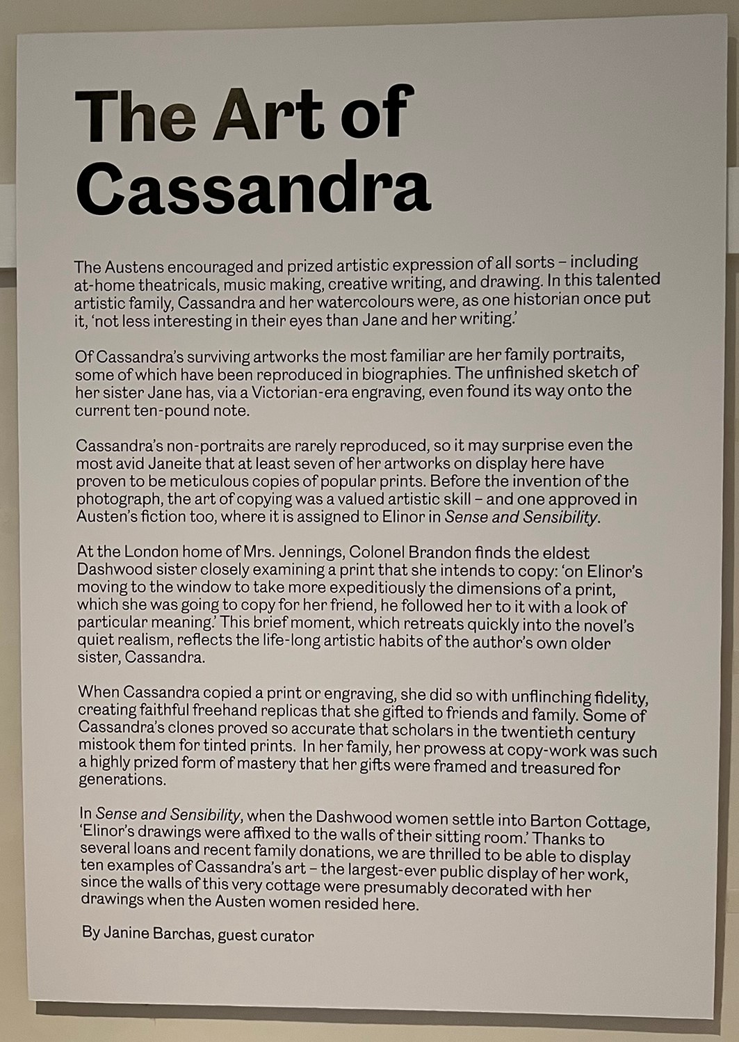 And were incredibly lucky again to see the exhibit on “The Art of Cassandra” on view til Sept 7, 2025, and curated by Professor Janine Barchas – a first-time ever display of 10 works by Austen’s sister: