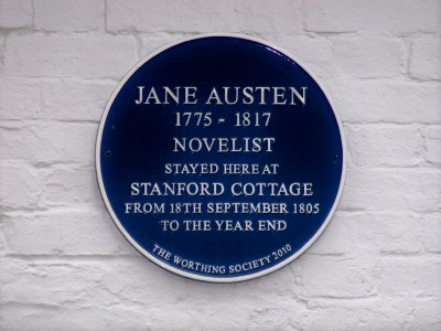 Worthing, prompted by Janet Clarke, have marked Jane’s stay at Stanford Cottage with a blue plaque on the building giving salient details, and you can just see it above the window to the right of the tree in the photo above. It is shown here with more detail.