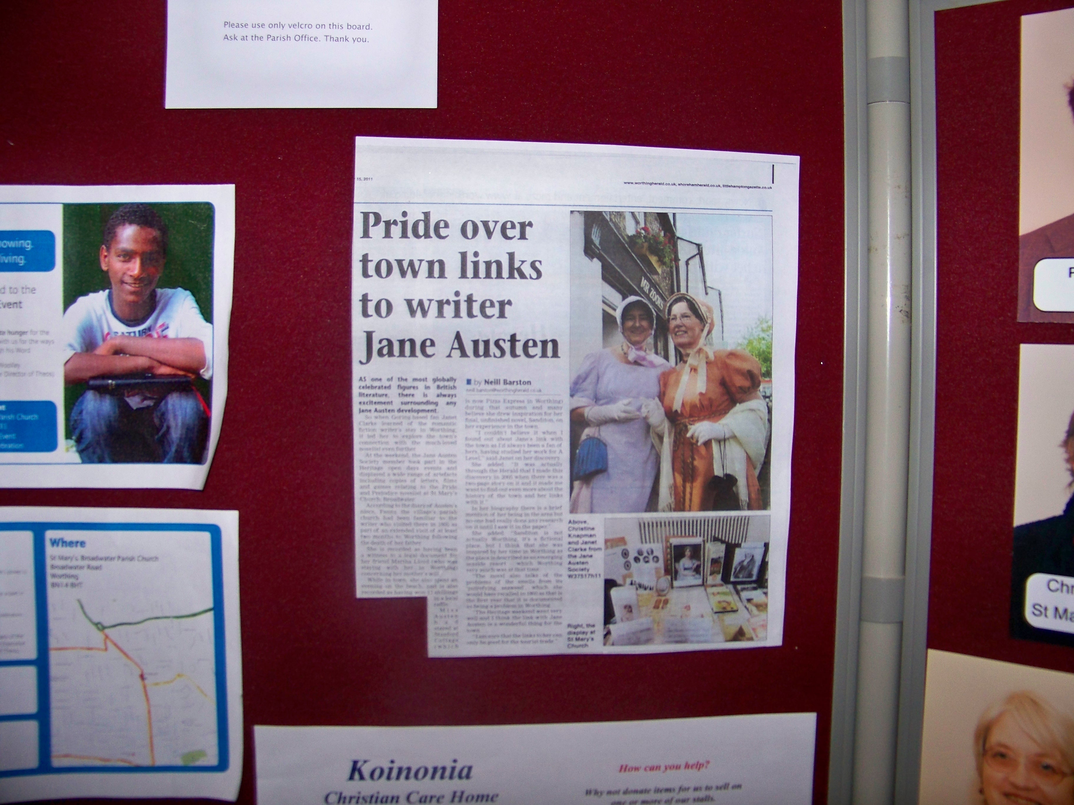 (2) St Mary’s Broadwater could display a prayer composed by Jane Austen to commemorate her period of worship there. I commended,