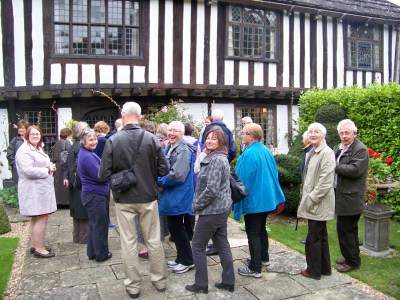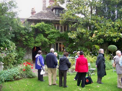 Our party was welcomed by the owners: Peter Thorogood, author and composer, and Roger Linton, curator and designer, who stressed that St Mary’s was still a lived-in home, and has been continuously for over 600 years. We were all given leaflets (Louis Simond is again proved correct about leaflets), that confirms their website as being www.stmarysbramber.co.uk and it is well worth a visit. St Mary’s is a fine example of a late 15th Century timber-framed house, and is a Grade I listed building. The photo [above] is of some of our troupe going in.