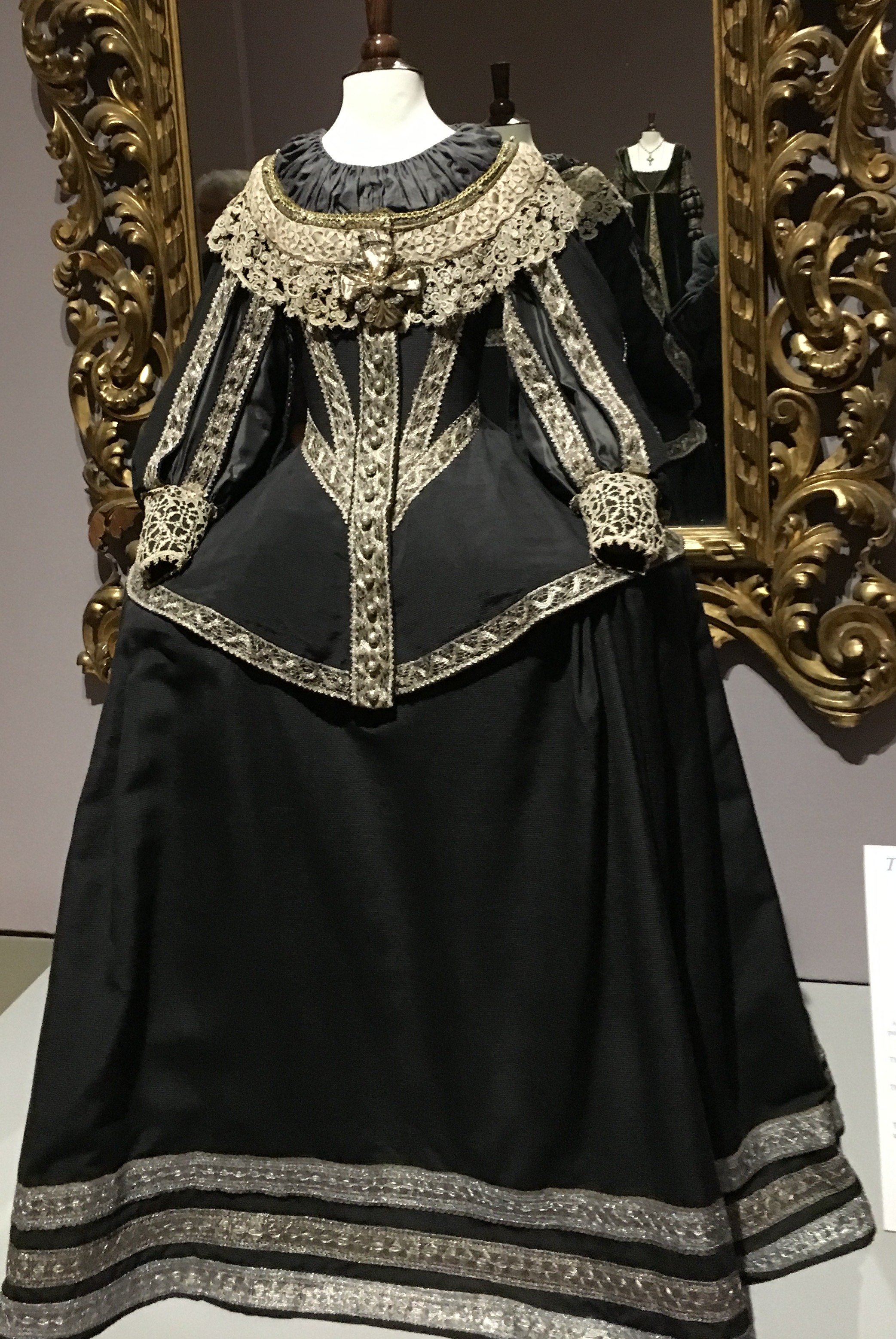 The costumes are arranged chronologically. And YES, there is a Jane Austen, but alas! only one … we begin in the Renaissance period with this stunning dark green velvet: (you can click on any picture to enlarge it and see more detail)