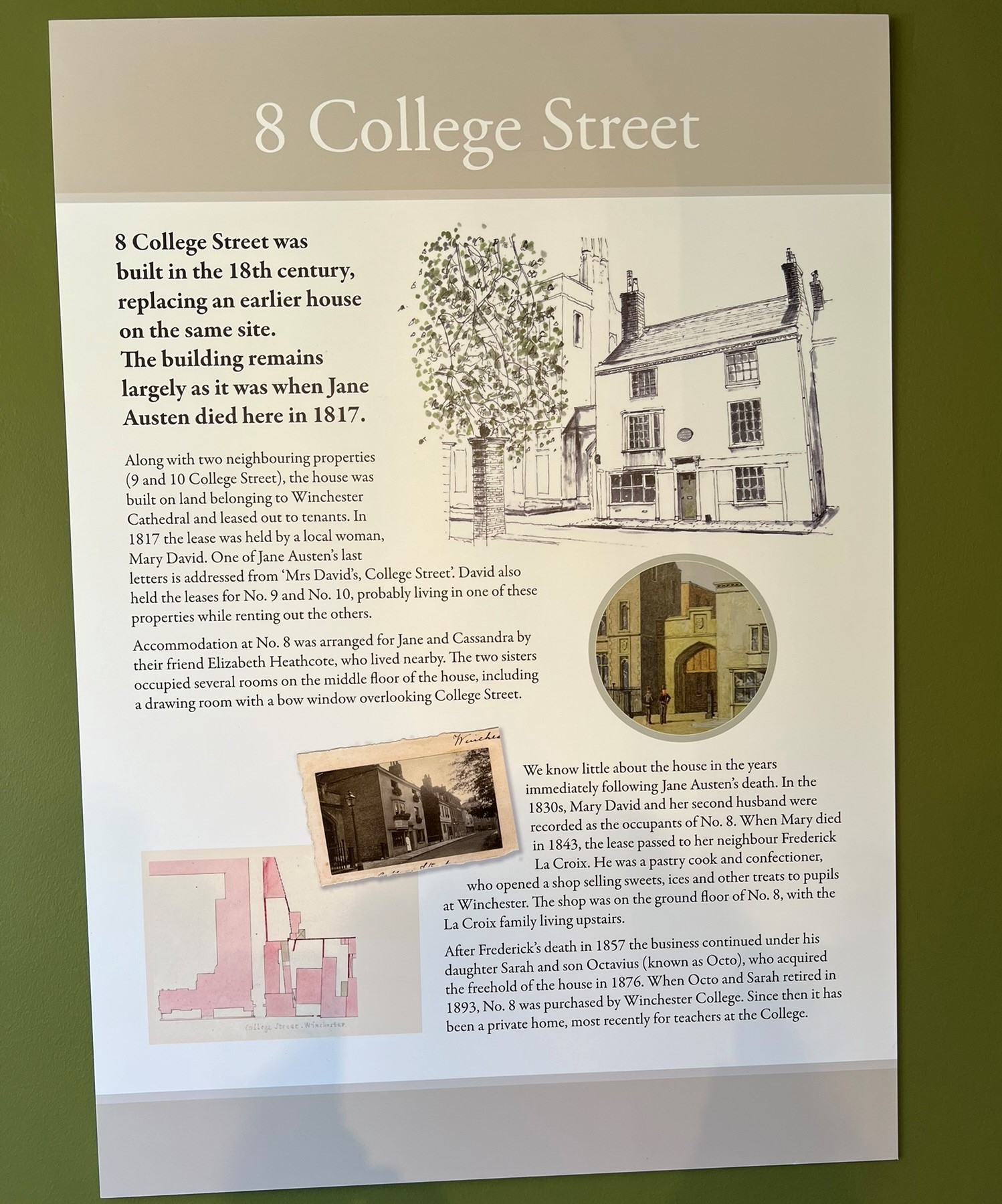 It was here at 8 College Street that Austen penned her final verse about St. Swithin’s Day – “Venta” just a few days before her death. You can read the poem here.
