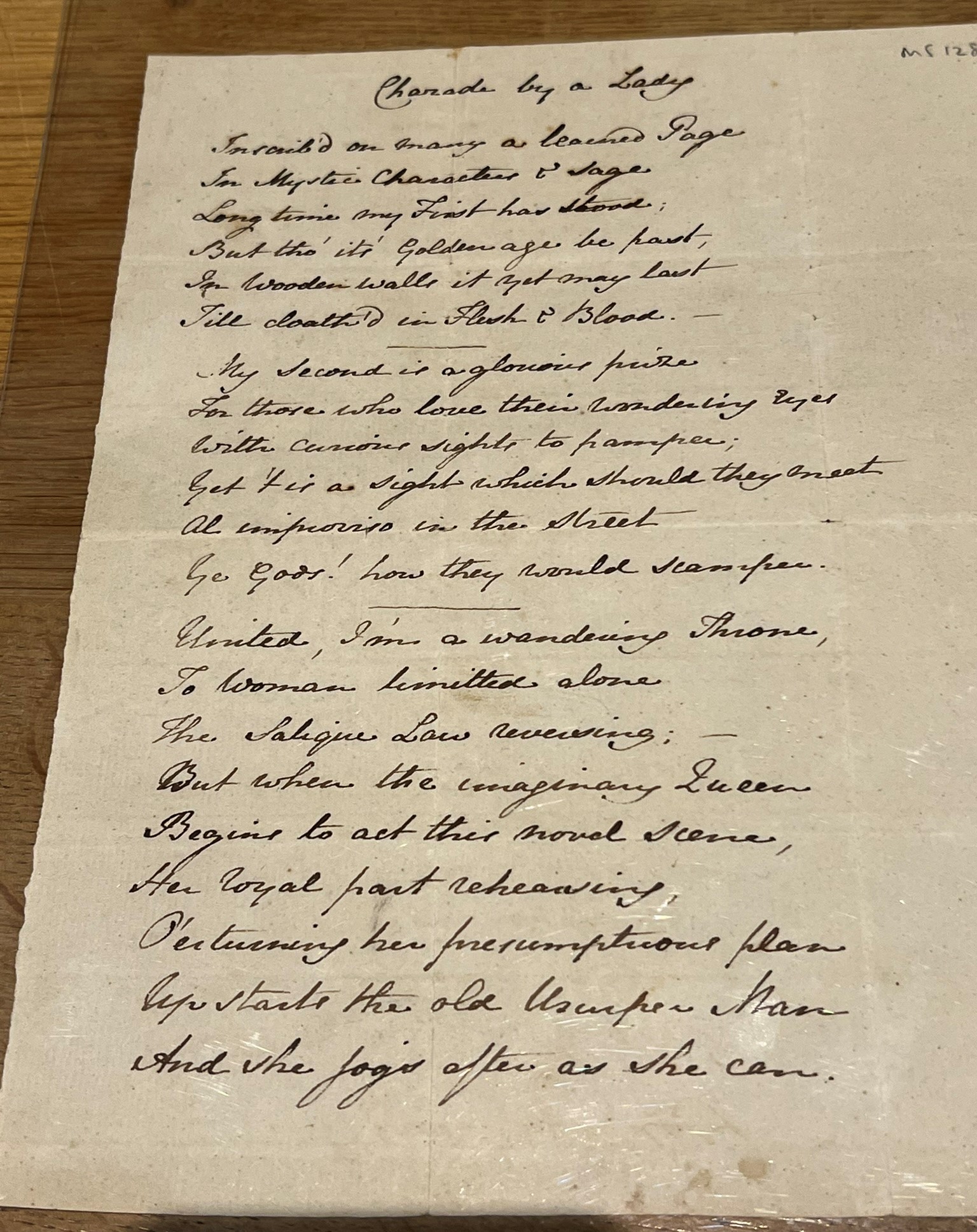 here is a poem written out by James Austen / and a charade by Jane: