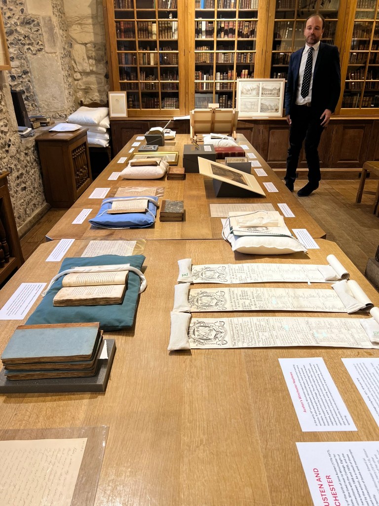 And then to the library where the Special Collections Librarian Dr. Richard Foster spoke to us about the several items of interest to a crowd of Janeites – including the rolls of students where we could see the names of her attending nephews.
