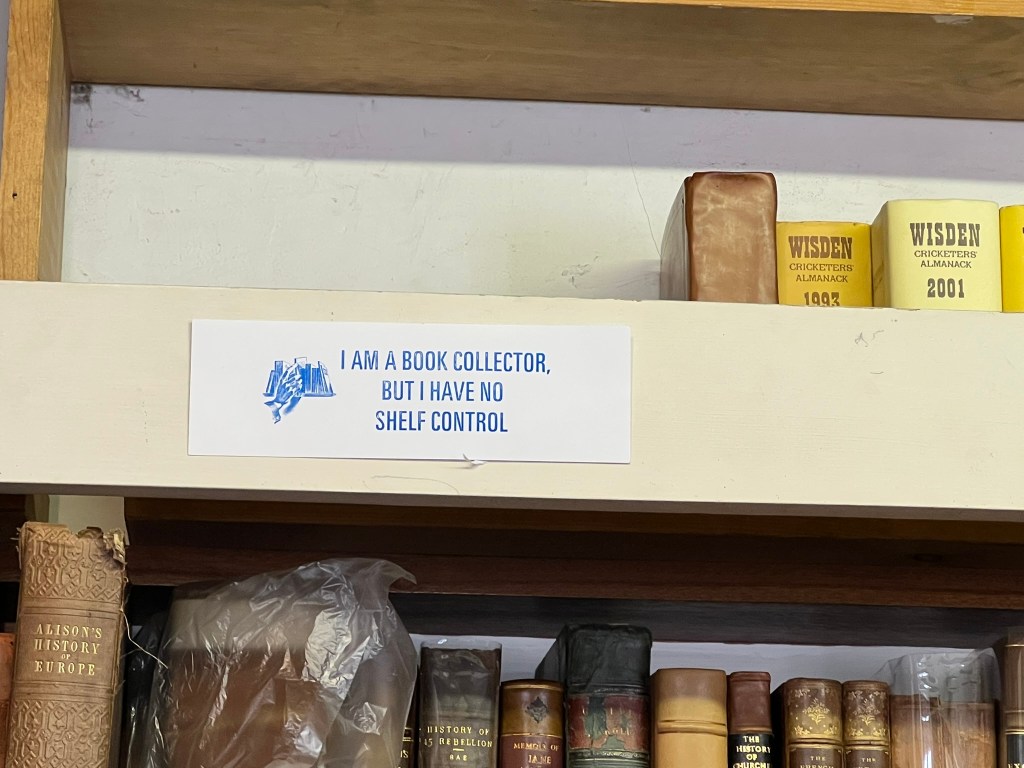 Found The Winchester Bookshop on St. Georges St – and DID find a few things there, including this sign, one I had never seen before, though it certainly could be my mantra…