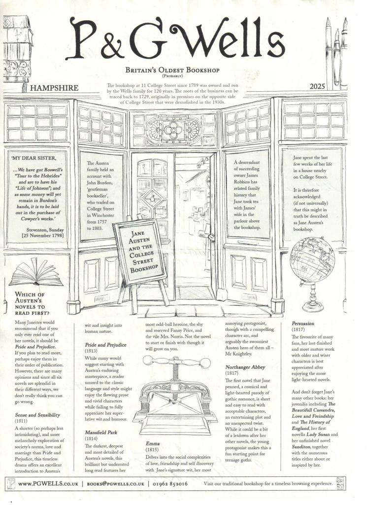 Leaving the Cathedral, I had lunch at the café, then wandered around in search of Bookshops – first finding the current building of The Hampshire Chronicle, publishing since 1772 – and certainly a paper the Austens would have read: