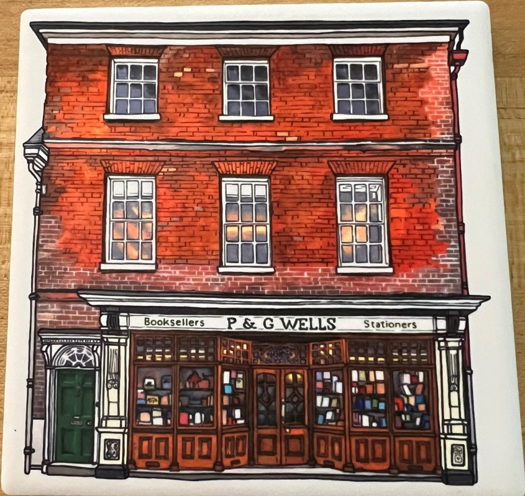 The P&G Wells bookshop is just down the street from 8 College St and where the Austens had a standing account with the then bookseller John Burdon. I missed an exterior photo but I do have this tile of the front, a gift from my roomie Joy! : it looks just like this: