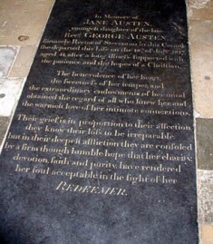 It was not until after 1870 that a brass memorial tablet was placed by her nephew James Edward Austen-Leigh on the north wall of the nave, near her grave: it tells the visitor that