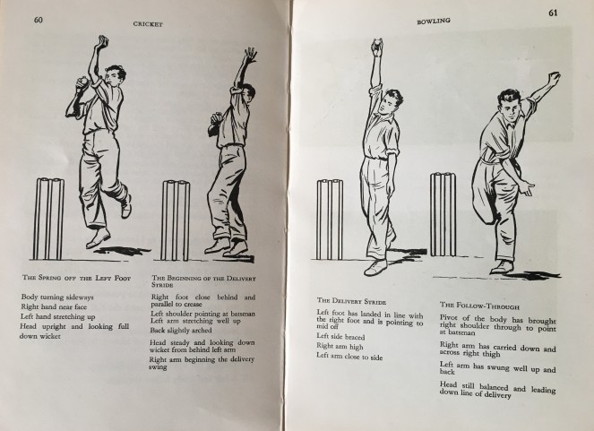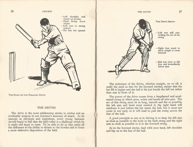 When I was seven years old my father bought me a cricket bat. He also bought this book for me, Approach to the Game: CRICKET_HOW TO PLAY, published for the M.C.C [Marylebone Cricket Club] 1955. It had some clear illustrations in it so I could analyse how to play certain skills.