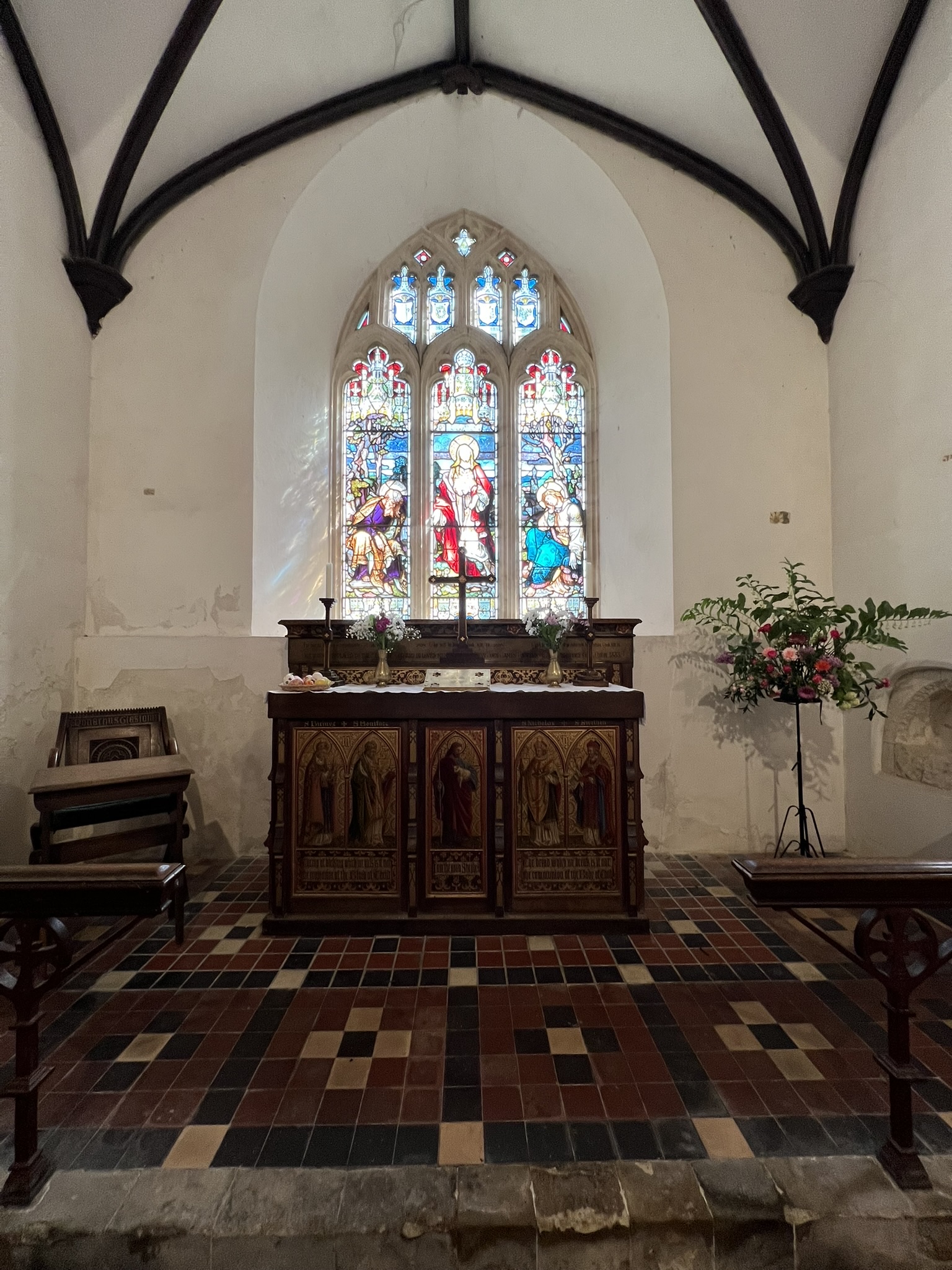 The church interior is lovely, with these William Morris-like decorative designs, but not there during Austen’s time.